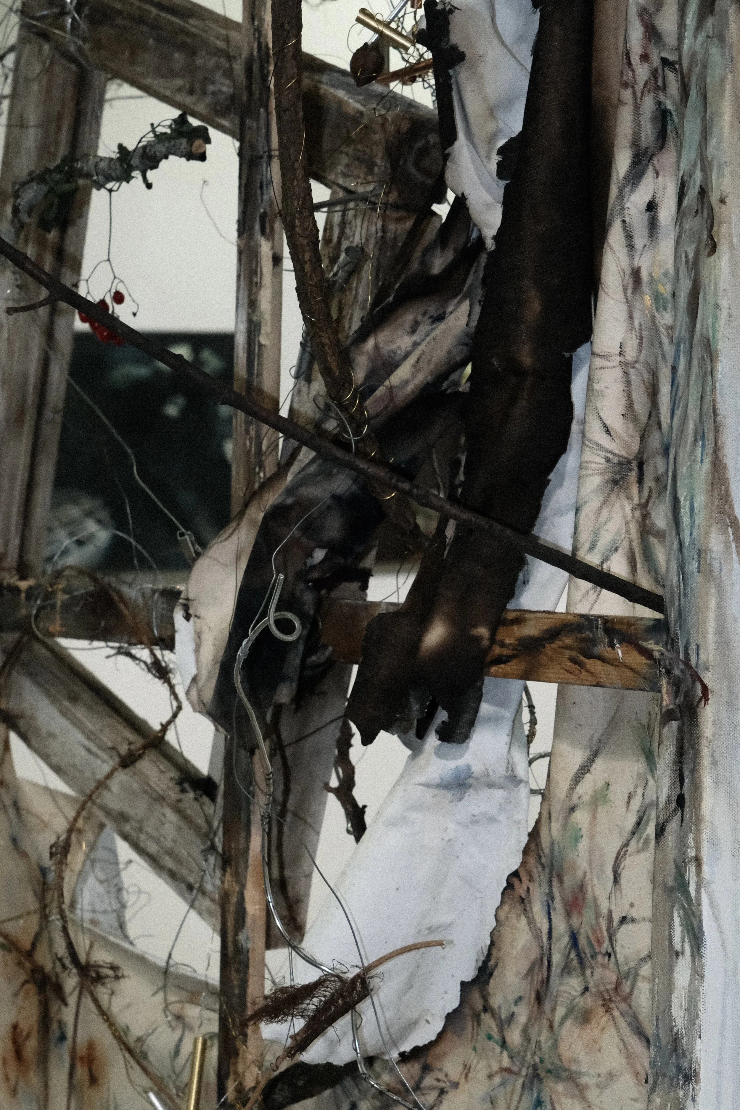 This piece originates from my contemplation of society and exploration of the human condition. The desolate and decayed environment deeply moved me during my visit to the abandoned hospital. Everything there—from the withered vines and corroded rust to the dirty old instruments, tattered bandages, and mottled walls—conveyed a sense of lost life and oppressive confinement. The only pathways to the outside world were the small windows and doors, which, in that moment, became the faint echoes of the patients’ yearning for freedom.